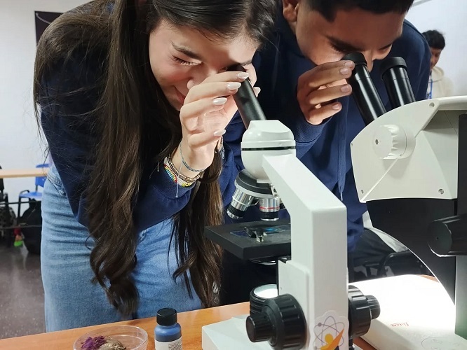 La visita culminó con un recorrido por las áreas de biología y química. Allí, los estudiantes utilizaron instrumentos de microscopía electrónica y participaron activamente en la realización de experimentos químicos. Entre las prácticas realizadas se encontraban reacciones ácido-base, descomposiciones catalíticas y la determinación de la escala de pH utilizando un indicador natural elaborado con repollo morado.