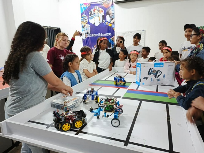 Niños y niñas del Consejo Comunal Bolívar y Chávez, de la parroquia Cecilio Acosta de Maracaibo, participaron en una jornada científica en el Mega núcleo de Robótica Educativa y Fundacite Zulia.